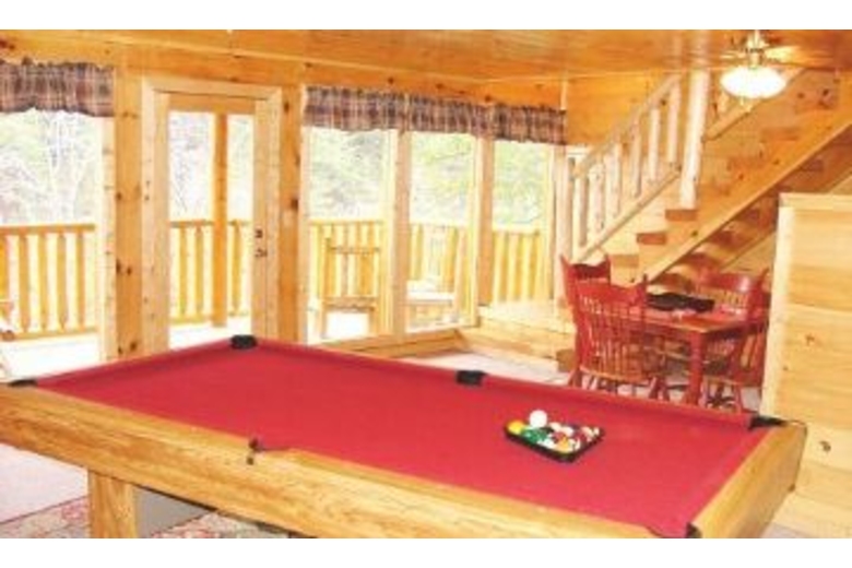 The loft bedroom features a bedside whirlpool tub, and the downstairs recreation room has a sleeping alcove. Recreation room has a full size pool table. Relax on your own private deck while enjoying the view from your hot tub. Your deck overlooks the cliff line of a wooded valley - one of the SmokyMountains' legendary hollows. Whether your plans call for active days seeing the sights, or a healthy share of high-level loafing, this cabin makes the perfect home base.Surrounding Description