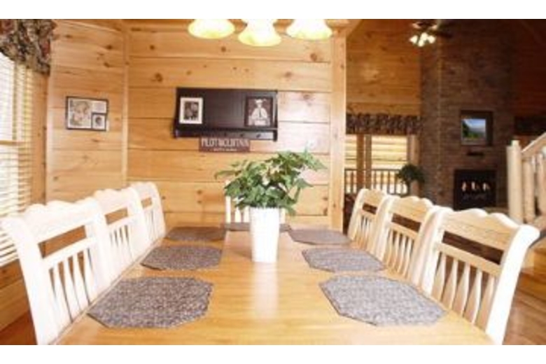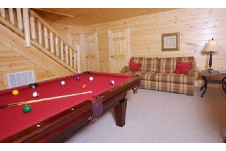 Each of the three bedrooms is on a separate floor with its own bath, so your privacy is assured. You'll also find two pull-out sleeper sofas and two additional half baths. And if maintaining your exercise program is a challenge when you travel, you'll appreciate the eliptical machine. This is a "please touch" cabin, rich with hardwood, snuggle-up quilts and touchable fabrics. Everything to put you in the lap of luxury.Surrounding Description