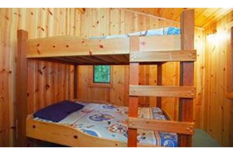 With two bedrooms, one bath this two story cabin has a comfortable living area with a gas stove plus cable TV, VCR/DVD player and a CD stereo. You'll love the spacious kitchen for meal preparation and the dining area is nearby. The main floor also has a laundry area and the bathroom. On the second floor the bedroom has two queen beds and a walk-out balcony. There's a divided sleeping area with a set of bunk beds on each side of the divider. The deck has outdoor furniture where you can relax and enjoy this beautiful mountain location.Surrounding Description