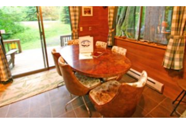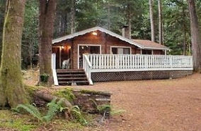 A cozy cabin at the rivers edge features an open living/dining area with a great open hearth woodburning fireplace (firewood provided). A well equipped kitchen will make you feel like you are in the comforts of your own home. You can also enjoy the included laundry cubby with a full size washer/dryer. One of the best features is the great out door deck with a gas grill overlooking the river. You can also enjoy the private outdoor hot tub. The bedroom has a queen size bed while the sleeping loft includes 1 double and 2 twin beds. This vacation property will sleep up to 6 personsSurrounding Description