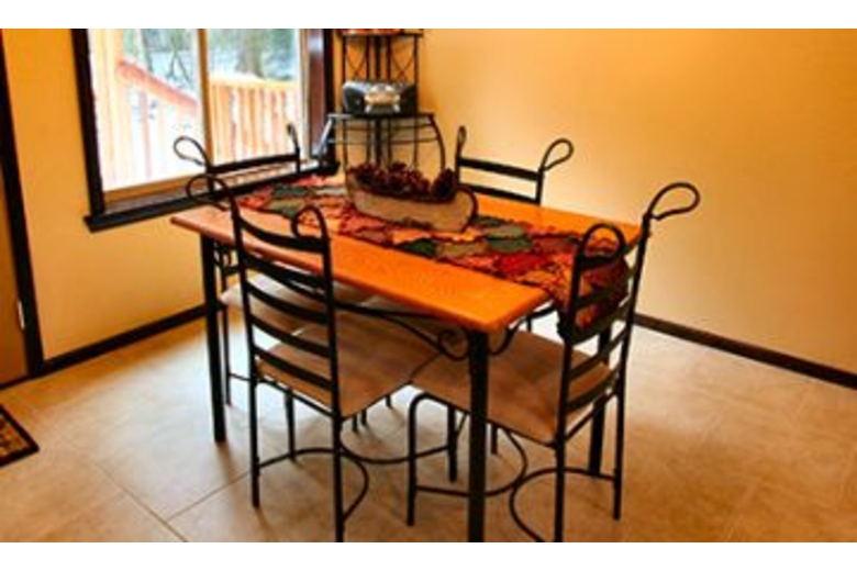 This brand new one bedroom cedar and log chalet is the perfect retreat for that romantic getaway. The exterior includes a beautiful covered front porch that is great for sipping a hot cup of cocoa on a cold day or a cold cup of lemonade on a hot summer day. The spacious interior has a log cabin feel with a great view and a huge fully equipped kitchen. The bedroom with a great king bed is simply perfect for a great nights sleep in front of the fireplace. Take a dip in the hot tub outside or just sit down to a great meal at the dining area with a view. This cabin is pet friendly.Surrounding Description