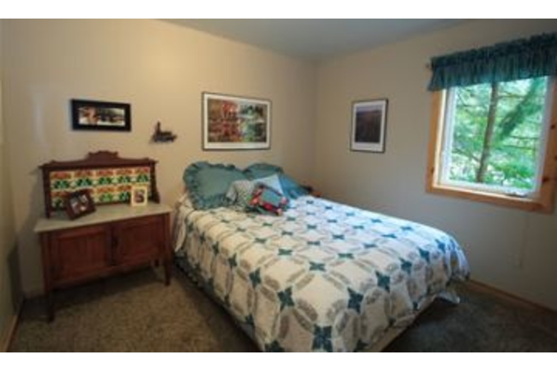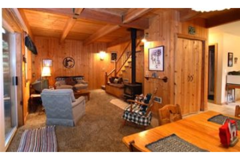 This two-story cabin comes with three bedrooms, two baths and a walk-out balcony. There is a fully equipped kitchen with a microwave and coffee maker. The master bedroom comes with a queen bed. The second bedroom also has a queen bed. In the third bedroom there are two twin beds and a bunk bed (two more twin beds). This cabin can sleep up to eight people comfortably. Also available in this cabin is a wood-burning stove, washer, dryer, TV, VCR and CD/cassette player.Surrounding Description