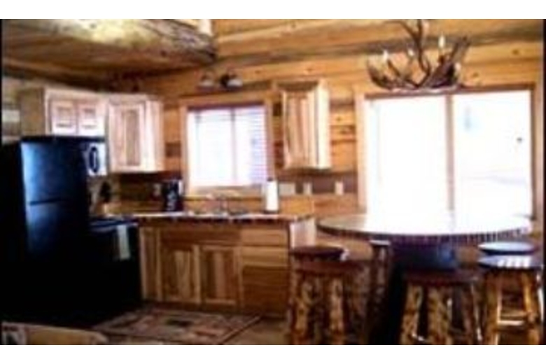 This cabin is furnished with a queen size bed in the downstairs bedroom,a queen size sofa sleeper in the front room and two queen beds in theloft. Enjoy the large bathroom with a tub/shower, toilet, and separatevanity area. The kitchen is fully equipped with refrigerator, range,full size sink, microwave, coffee maker, toaster, and all basic cookingand eating utensils.Surrounding Description