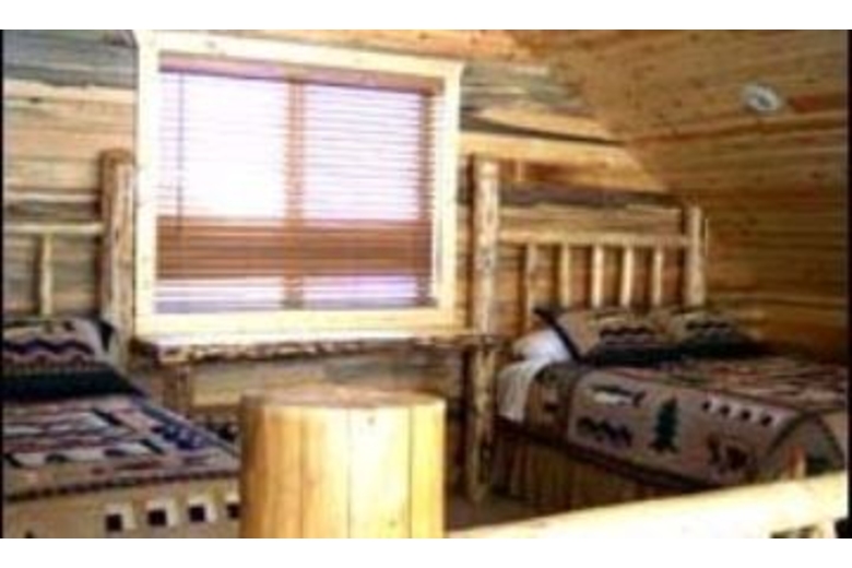 This cabin is furnished with a queen size bed in the downstairsbedroom, a queen size sofa sleeper in the front room and two queen bedsin the loft. Enjoy the large bathroom with a tub/shower, toilet, andseparate vanity area. The kitchen is fully equipped withrefrigerator, range, full size sink, microwave, coffee maker, toaster,and all basic cooking and eating utensils.Surrounding Description
