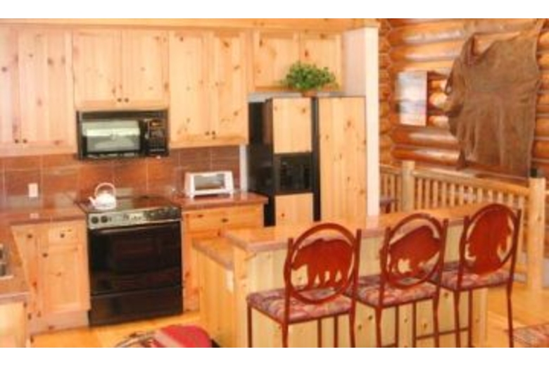 Come on in and experience a wonderful family vacation in this cabin with a "Cowboy and Indian" theme. This home features two living areas with one offering a lovely fireplace and the other being fun with a red and black Native American print couch. The kitchen is fully equipped and offers a breakfast bar with three chairs each with their own theme. One has a bear, another a buffalo and the last an Indian head. The dining area features a lovely log table with seating for eight.This home features three cozy bedrooms. The first bedroom offers a queen with patchwork bedding and a chest that sits at the foot of the bed. The second room offers a queen dressed in blue roses set on a log frame and two twin beds with red roses also on log frames. The third room features a queen with dark Native American print bedding and an animal skin painting on the wall.Surrounding Description
