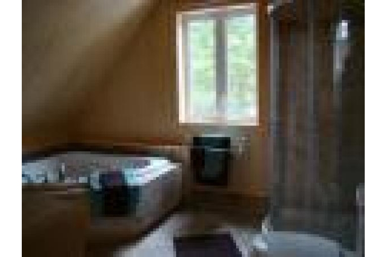 Upstairs there is a large master bedroom with queen bed and seating area where you can relax reading a book, or simply enjoy the view of the lake through the trees. There is a luxury en-suite bathroom with double occupancy corner bath, and beautiful ceramic tile shower. You will also find the second sitting room upstairs with a double sofa- bed for additional guests. From here you can relax and enjoy the lake-view or watch the flat-screen television, together with a home-theater system. A beautiful oak pool table is also on this level for your entertainment.