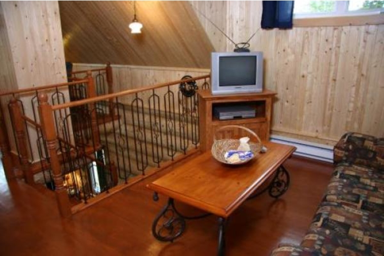 New cottage facing the Loup cervier lake, this new cottage is able to accommodate from 4 to 6 people comfortably. This peaceful haven with its private beach in the summer, invites relaxation and wonderful evenings with family and friends. There is a fully equipped kitchen with dishwasher and microwave.The open area on this floor lets you relax in front of wood stove in the living room, while keeping an eye on what’s happening in the kitchen. On the same floor you will find the bathroom with its footed tub and shower.On the second floor, two comfortable rooms await you, as well as a small reading area. A children’s corner is also arranged, with games, colouring books, television with DVD player as well as a comfortable sofa bed.The veranda overlooking the lake is the perfect spot for your morning coffee. For your first evening of relaxation at the Renard, you will have a bottle of wine waiting for you. Everything is taken care of, linens, towels, everything you will need is there.Outside for the summer, take advantage of a picnic table, a barbecue, and an outdoor fireplace for those cooler evenings. Summer as in winter, you can come and enjoy our brand new cottage, the Renard.