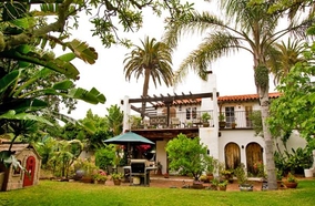 Welcome to The Sea Dahlia, circa 1914, a summer cottage, in a much sought after location, the heart of downtown La Jolla and the last of a dying breed of simple spacious turn of the century homes and across the street from La Jolla's Cultural Zone. Architecturally, it emulates the look and feel of an earlier, quieter era of village life.Our spacious kitchen catches the morning sun. Pressed tin ceiling tiles are used as back splashes and warm earthy tones of our unique floor make for a very cheerful ambience.A fireplace in the living room adds to the sense of warmth and hominess as does our large shaded porch which is a great place to watch the parade of life on warm summer days.Our corner yard with fountain is fun and interesting.Our front yard is dominated by a very forty foot high, 90 year old, magnolia tree. When we remodeled the Sea Dahlia, our plan was to accommodate the oldest living resident on the property the tree.And the tree pays us back by shading us from the afternoon sun and keeping our home about ten degrees cooler than the ambient temperature.In fact, we did not even need to install air conditioning because the combination of being just a few blocks from the beach and shade from the tree, our home remains cool.A Jacuzzi and shower are in the backyard. The Jacuzzi fits three adults or four children and is very nice after a day of snorkeling and swimming at La Jolla Cove.