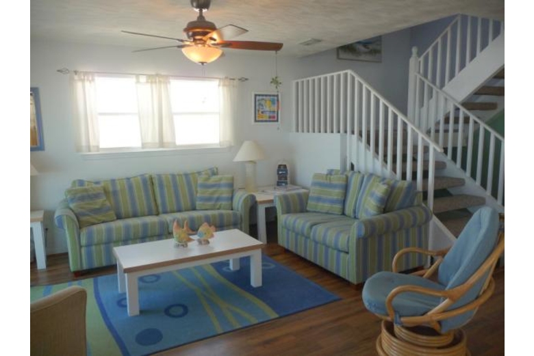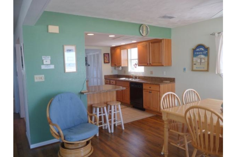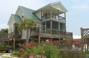 Reflections has superb beach views from the open living/dining room area. The front upstairs master bedroom has a king sized bed and there is a king in the 2nd master bedroom upstairs. The other 2 bedrooms have queen sized beds. The three bedrooms on the first and second floors have attached full baths and the ground level bedroom has an attached two piece bath. There is also a queen sized sleeper sofa in the living room so you can accommodate 10 people. The house also has lots of closets and storage areas for guests to use.