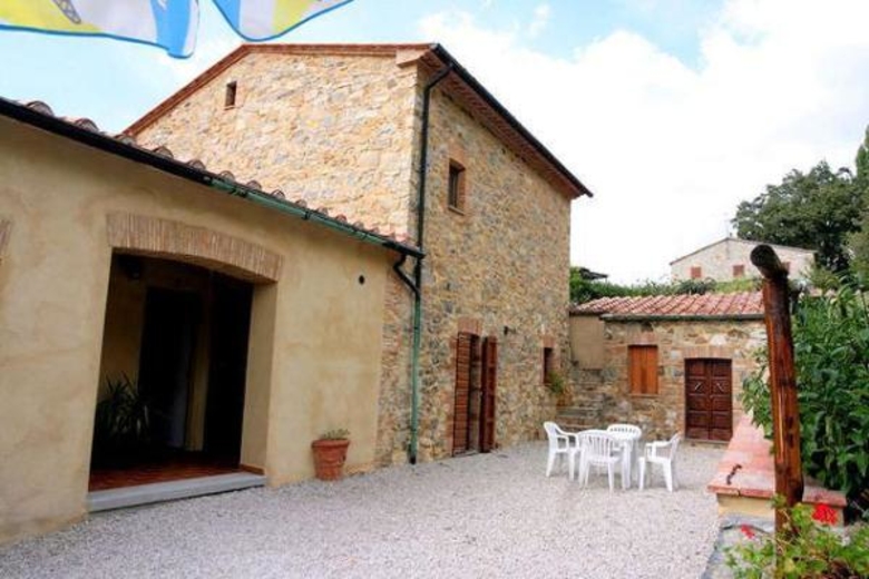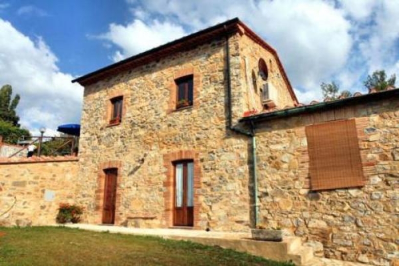 Sopralpino is an ancient farmhouse situated in an isolated and breathtakingly beautiful position in the Metallifere Hills on the border between the Tuscan provinces of Siena, Pisa and Grosseto. The property, with all the fascination of time gone by, now offers a tranquil and relaxing home for lovers of Tuscany. The outside, with stone walls, stair cases, a court yard and a wonderful private pool (6x12 meter or depth 0’70-1’80 meter) with a dramatic view over the entire valley, and the sea in the distance, make this house an ideal site in which to spend an unforgettable holiday. The swimming pool, being heated with geothermal energy, can be enjoyed all year round, and at no extra cost as for the house central heating too. The interiors have maintained their original characteristic, are very cosy and furnished with love for details in the typical Tuscan style.