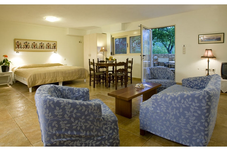 In the resort 2 m from center of Istron Bay, sunny, 2 km from the beach, View: sea beach forest garden mountain trees village, Street address Istron Village.