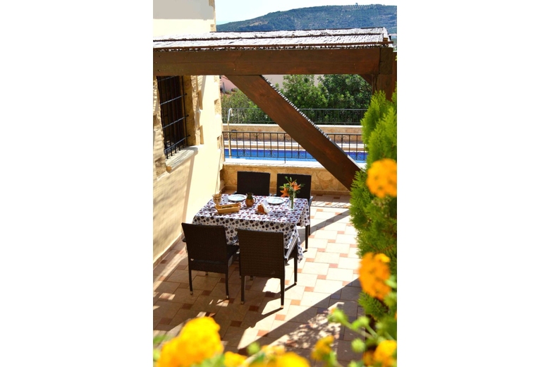In the center of Melissourgio, 2.5 km from the beach, ecotourism destination, View: sea mountain trees village ruins, Street address Melisourgio.