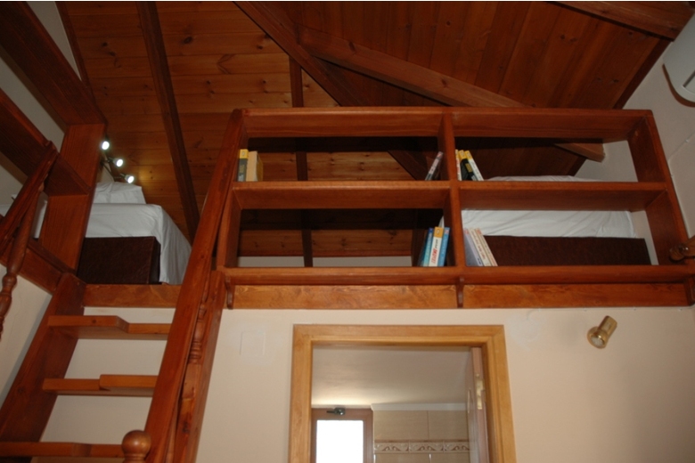Main floor: Living room, 1 open attic bedroom, with 1 beds, open-hearth fireplace, satellite TV flat screen CD-player DVD air conditioning, exit from this room to the balcony. 1 double bedroom, with (wardrobe), 1 double beds, TV air conditioning, exit from this room to the balcony. Kitchen: Kit./living room 4 hot plates oven dishwasher microwave freezer electric coffee machine toaster refrigerator, with air conditioning. Bathroom: 1 bathroom, paper towels