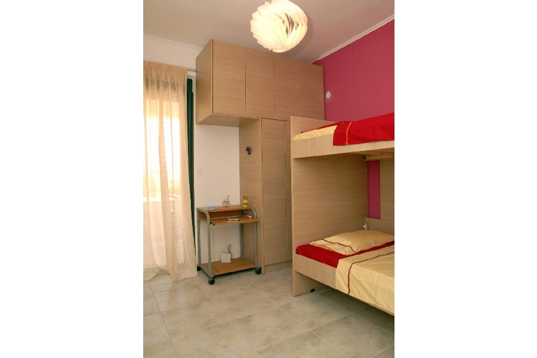 Main floor: 1 double bedroom, with (curtain), 1 double beds, air conditioning, exit from this room to the balcony. 1 double bedroom, with 1 double beds, air conditioning, exit from this room to the balcony. 1 children's room, with (curtain wardrobe), 1 bunk beds, air conditioning, exit from this room to the balcony. Bathroom: 3 bath/shower bath or shower, hydro massage tub. Upper floor: Living/dining room, with (curtain), 2 sofabeds, open-hearth fireplace dining table, TV air conditioning, exit from this room to the balcony. Kitchen: kitchen dishwasher 4 ceramic glass hob hotplates freezer dining table