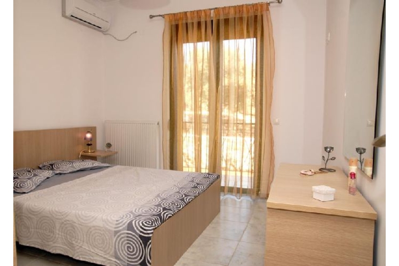 In the resort from center of Megala Chorafia, quiet sunny, 2 km from the beach, View: sea garden mountain nature trees pool village, Street address Megala Chorafia 73003.