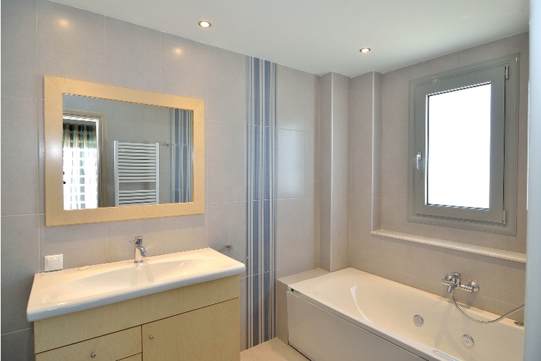 Main floor: Living/dining room, with with veranda, dining table, satellite TV flat screen CD-player DVD air conditioning, exit from this room to the garden veranda swimming pool. Kitchen: kit./living room oven dishwasher 4 ceramic glass hob hotplates microwave freezer grill electric coffee machine toaster crockery glassware refrigerator. Bathroom: 1 shower/WC. Upper floor: 1 double bedroom, with (curtain wardrobe), 2 beds, shower/WC, TV flat screen air conditioning, exit from this room to the balcony. 1 double bedroom, with (curtain wardrobe), 1 double beds, bathroom, hydro massage tub, TV air conditioning, exit from this room to the balcony