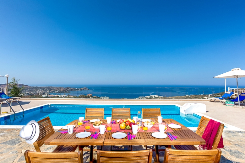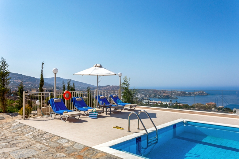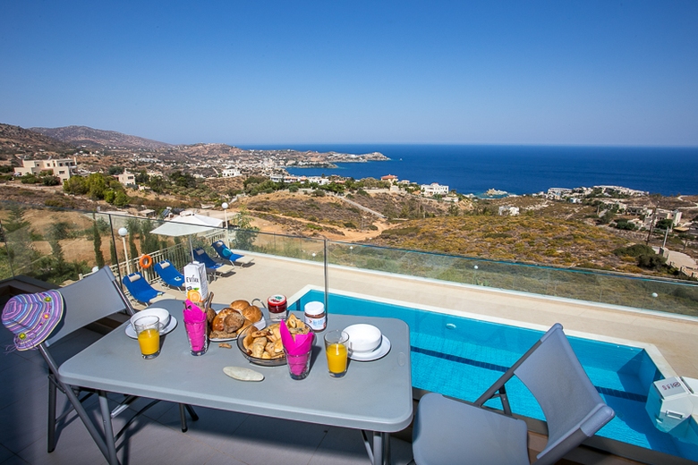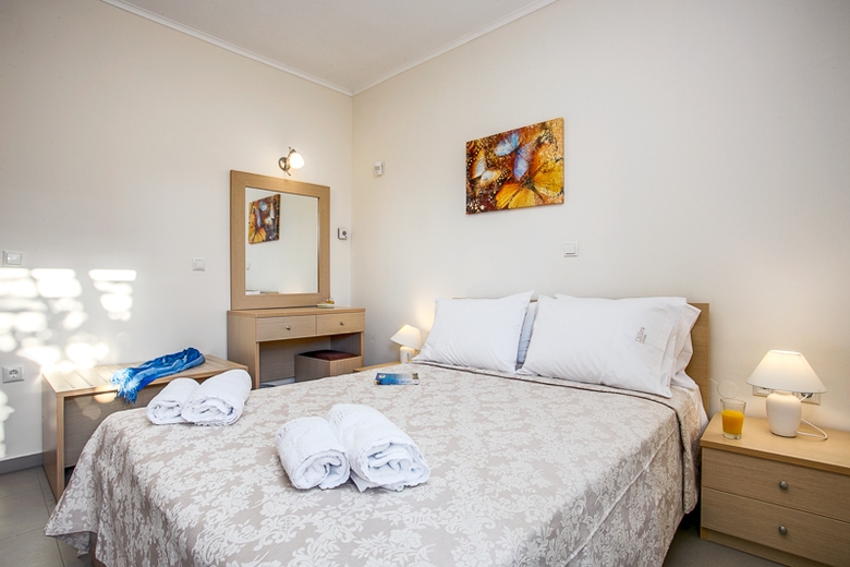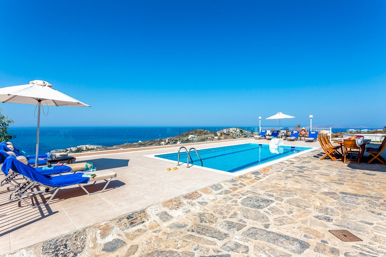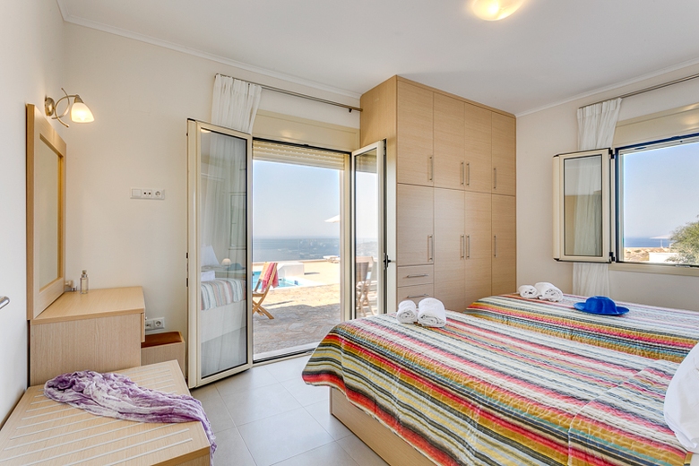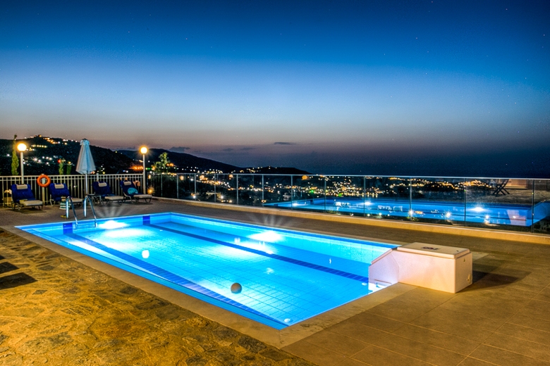 In the resort 2.5 km from center of Lygaria, sunny, on top of a hill, 1.6 km from the beach, View: sea garden mountain trees pool village, Street address Ammoudi 71500.