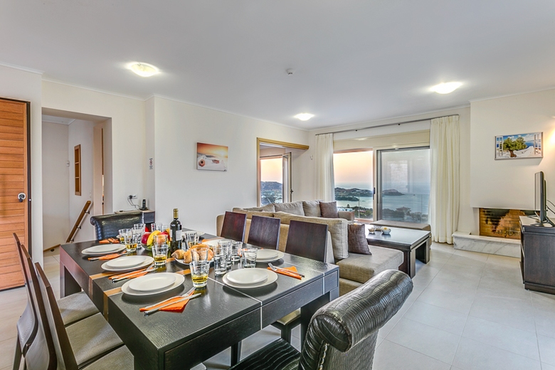 Lower ground floor: 1 large double bedroom, with (curtain wardrobe), 1 double beds, bathroom, air conditioning, patio swimming pool. 1 double bedroom, with (curtain wardrobe), 1 double beds, air conditioning, patio swimming pool. 2 double bedroom, with (curtain wardrobe), 2 beds, air conditioning, patio swimming pool. Bathroom: 1 bathroom bath/shower, Available soap shampoo paper towels. Main floor: Living/dining room, with with veranda (panoramic window), open-hearth fireplace dining table, satellite TV flat screen CD-player DVD air conditioning, exit from this room to the balcony. Kitchen: kitchen 4 hot plates oven dishwasher microwave freezer grill electric coffee machine toaster cookware crockery glassware refrigerator kettle. Bathroom: 1 separate WC