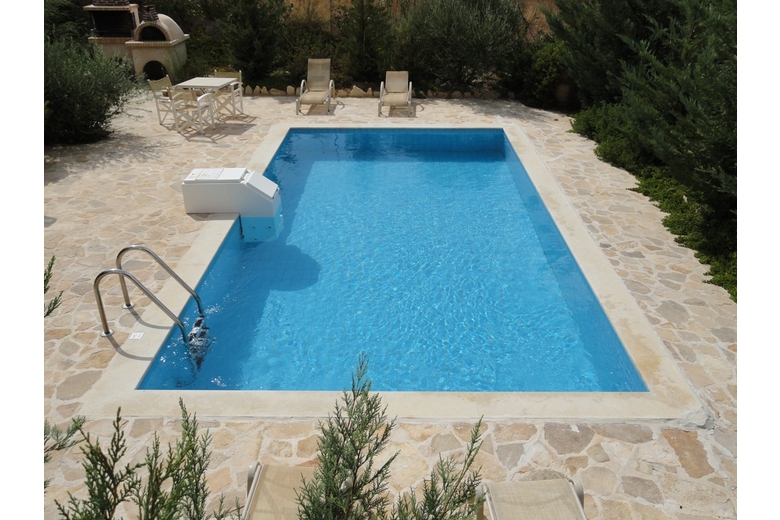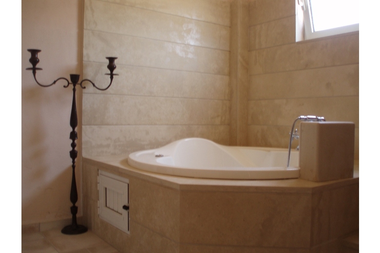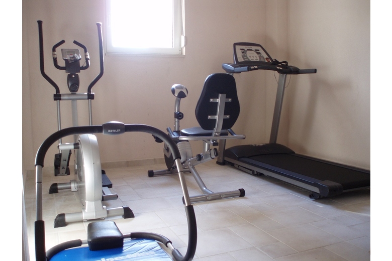 Lower ground floor: 1 double bedroom, with 2 beds, air conditioning. Large, 1 double bedroom, with 1 double beds, satellite TV air conditioning. Fitness room. Bathroom: 1 bathroom hammam-shower. Main floor: Living/dining room, open-hearth fireplace dining table, satellite TV CD-player hi-fi system DVD DVD collection available home cinema air conditioning, exit from this room to the garden swimming pool. Kitchen: with large kitchen dishwasher 4 induction hot plates microwave freezer electric coffee machine steamer toaster blender crockery glassware refrigerator, exit from this room to the garden swimming pool. Upper floor: Large, 1 double bedroom, with 1 double beds, bathroom, air conditioning, exit from this room to the balcony