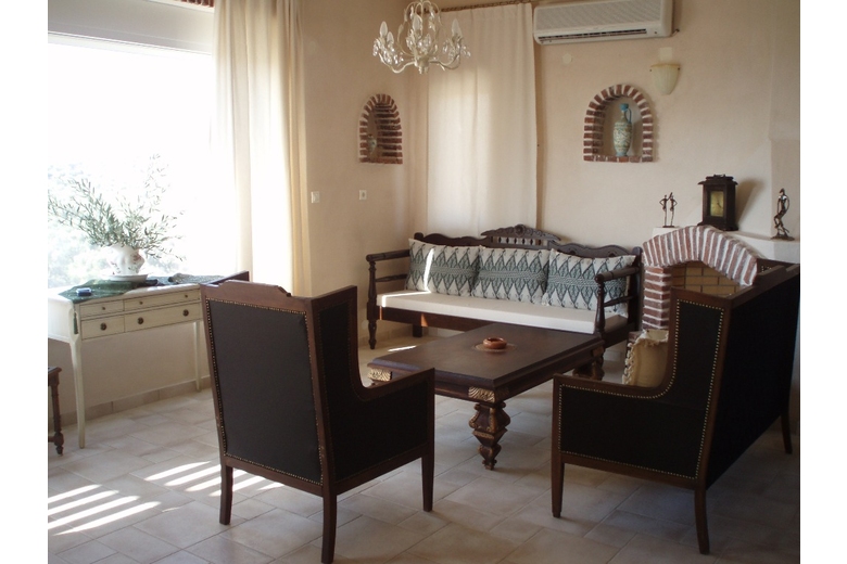 Myrsini, 3 -room villa, 120 m2, Furniture of the apartment: comfortable rustic antique tasteful stylish cosy wooden furniture.