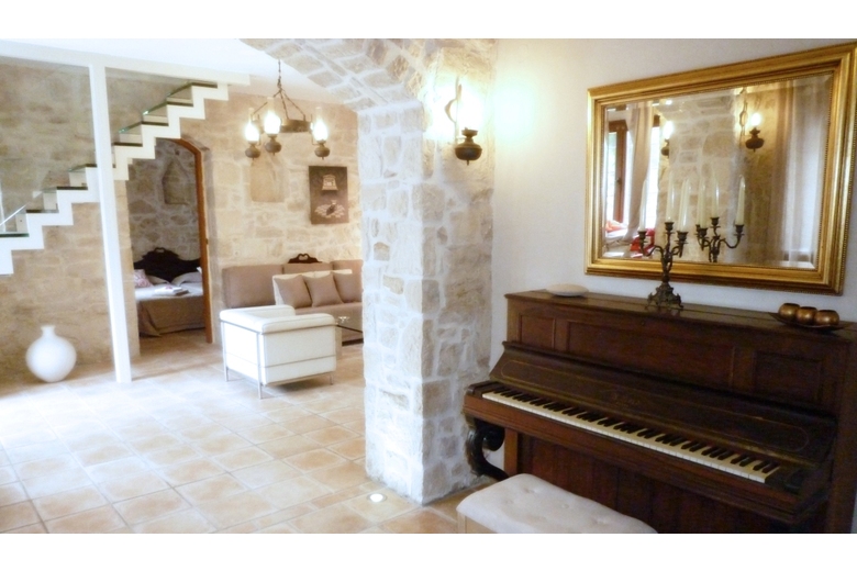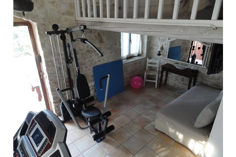 Main floor: Living/dining room, with with veranda, dining table, satellite TV DVD air conditioning, exit from this room to the garden veranda swimming pool. Large, 1 double bedroom, with 1 double beds, bathroom, hydro massage shower, satellite TV air conditioning, veranda swimming pool. Large, 1 double bedroom, with 2 beds, satellite TV air conditioning, veranda swimming pool. Kitchen: Kitchen oven dishwasher 4 ceramic glass hob hotplates microwave freezer grill electric coffee machine steamer toaster crockery glassware refrigerator, exit from this room to the garden swimming pool. Bathroom: 1 bathroom shower/WC, Available soap shampoo paper towels. Upper floor: Large, 1 open attic bedroom, with 1 double beds, bathroom, hydro massage tub, jacuzzi private hot tub, satellite TV air conditioning, exit from this room to the balcony. Large fitness room, 1 double bedroom, with 1 double beds, bath/WC