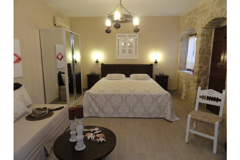 Lower ground floor: Large, 1 double bedroom, with 1 double beds (1.8 x 2.1 cm), bathroom hammam-shower, satellite TV CD-player DVD air conditioning, veranda. Main floor: living/dining room, with 1 double sofabeds, dining table kitchen corner, satellite TV CD-player hi-fi system DVD DVD collection available air conditioning, exit from this room to the garden balcony veranda swimming pool. Kitchen: with large kitchen dishwasher 4 ceramic glass hob hotplates microwave freezer grill electric coffee machine steamer toaster blender crockery glassware refrigerator, exit from this room to the garden swimming pool. Bathroom: 1 bathroom, Available soap shampoo paper towels bathrobes