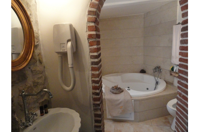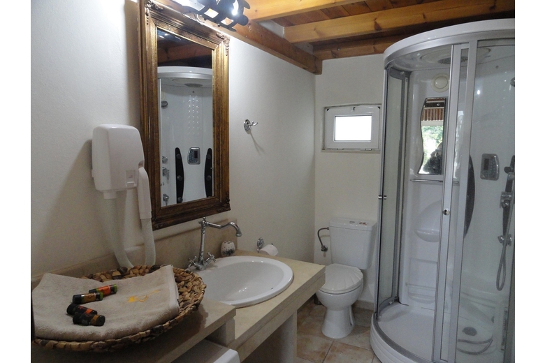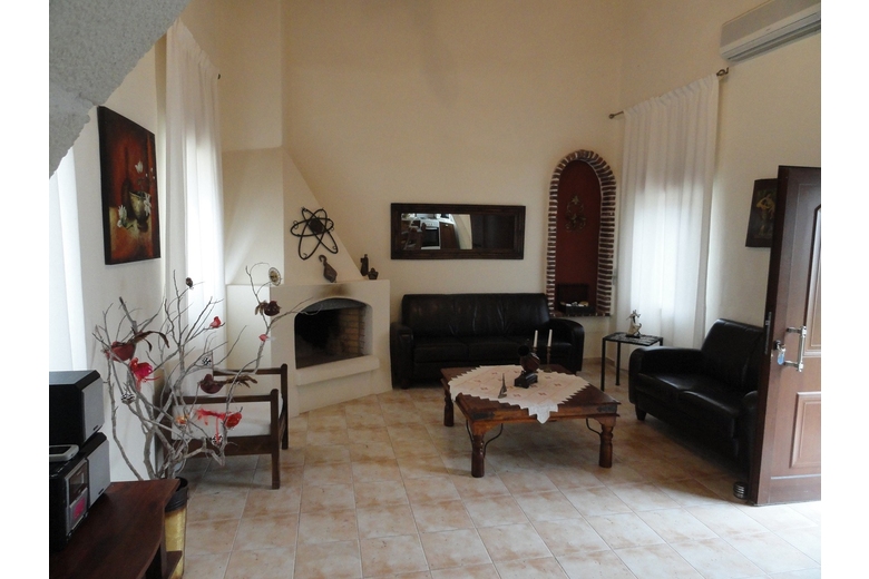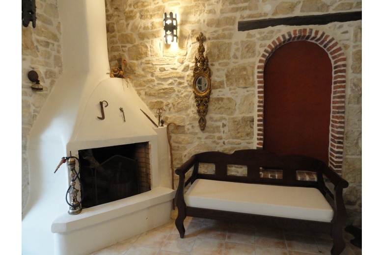 Main floor: 1 double bedroom, with 1 beds, 1 double beds, open-hearth fireplace, whirlpool with corner bath, air conditioning. Dining room, dining table. Living room, open-hearth fireplace, satellite TV, exit from this room to the garden swimming pool. Kitchen: Kitchen 4 hot plates oven dishwasher microwave grill electric coffee machine dining table toaster crockery refrigerator. Upper floor: 1 double bedroom, with 1 beds, 1 double beds, bathroom hammam-shower, hydro massage shower. Living/dining room, open-hearth fireplace dining table, satellite TV flat screen CD-player DVD air conditioning, exit from this room to the balcony. Kitchen: Kitchen 4 hot plates oven microwave grill electric coffee machine dining table toaster crockery refrigerator