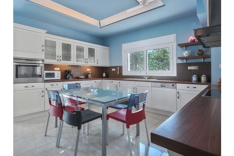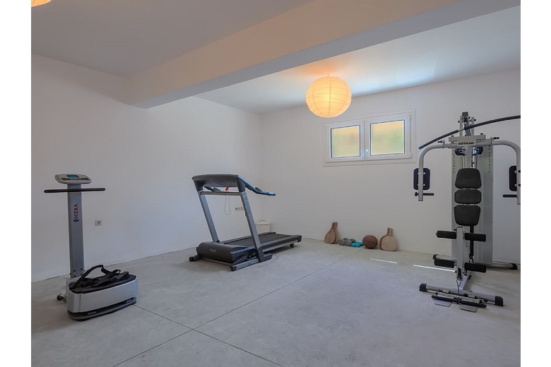 Main floor: Open large living room, with with veranda (curtain), open-hearth fireplace, satellite TV flat screen radio CD-player DVD electric heating air conditioning music library, veranda swimming pool. 1 large room, with (curtain), 2 beds, electric heating air conditioning, veranda. Kitchen: With large kitchen oven dishwasher 4 ceramic glass hob hotplates microwave freezer electric coffee machine bar dining table toaster refrigerator. Bathroom: 1 bathroom bath/shower. Upper floor: 1 large double bedroom, with 1 sofabeds, 1 double beds, electric heating air conditioning. 1 double bedroom, with (curtain), 1 double beds, electric heating air conditioning, exit from this room to the balcony. 1 large room, with (curtain), 2 beds, electric heating air conditioning, exit from this room to the balcony. Large game room. Large fitness room. Bathroom: 1 bath/shower