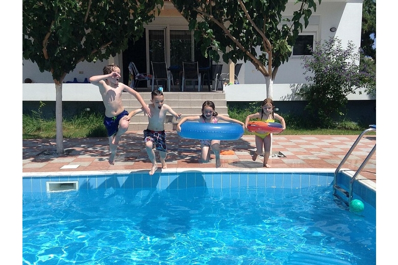 Private: Property 300 m2, sun umbrellas, natural garden, lawn for sunbathing, beautiful garden to relax, 1 swimming pool with privacy (open from 01 05 to 31 10 ), children's pool, terrace garden furniture barbecue fireplace, children's playground.
