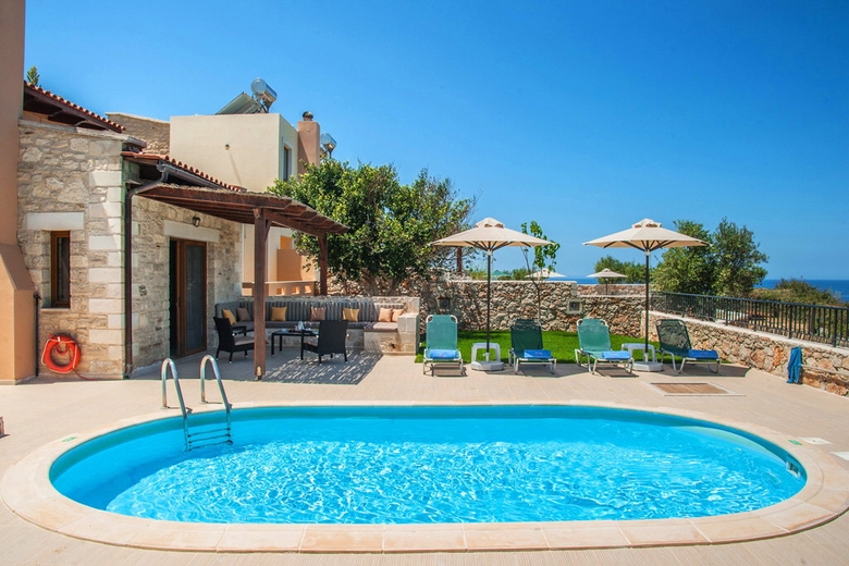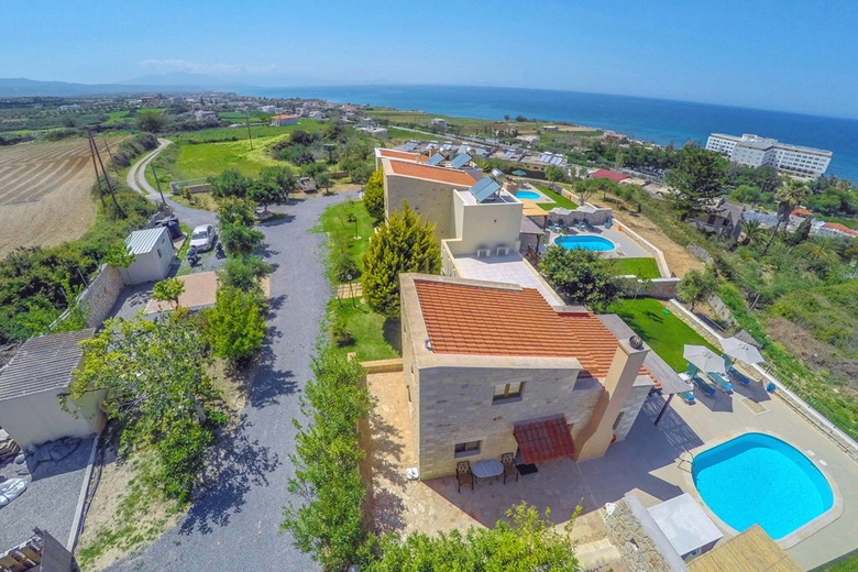In the center of Stavromenos, quiet sunny, 1 km from the beach, View: sea garden trees pool, Street address Stavromenos.