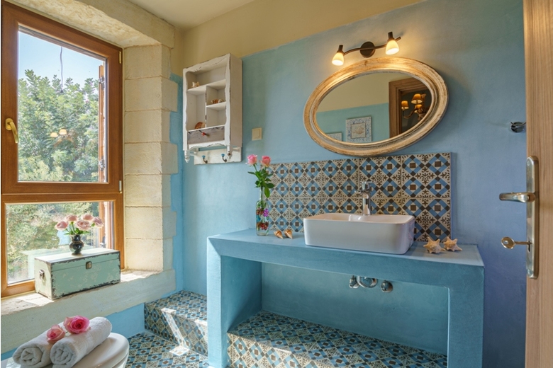 Very beautiful view of sea, mountains, swimming pool, garden countryside, village.