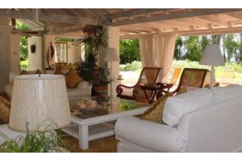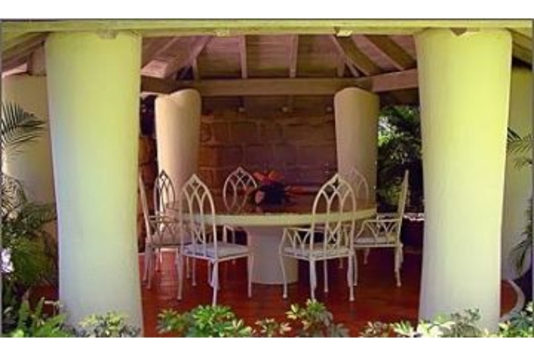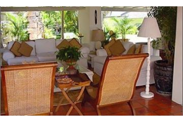 A most striking property, the villa is constructed of coral stone and designed for gracious open-air tropical living. The interiors feature tiled floors and the living room is furnished with tasteful contemporary sofas. The spacious living room is roofed but completely open air on all sides providing enjoyment of the cooling breezes as well as vies of the gardens and ocean. The dining room is a separate open-air delightful pagoda style room set in the garden.Surrounding Description