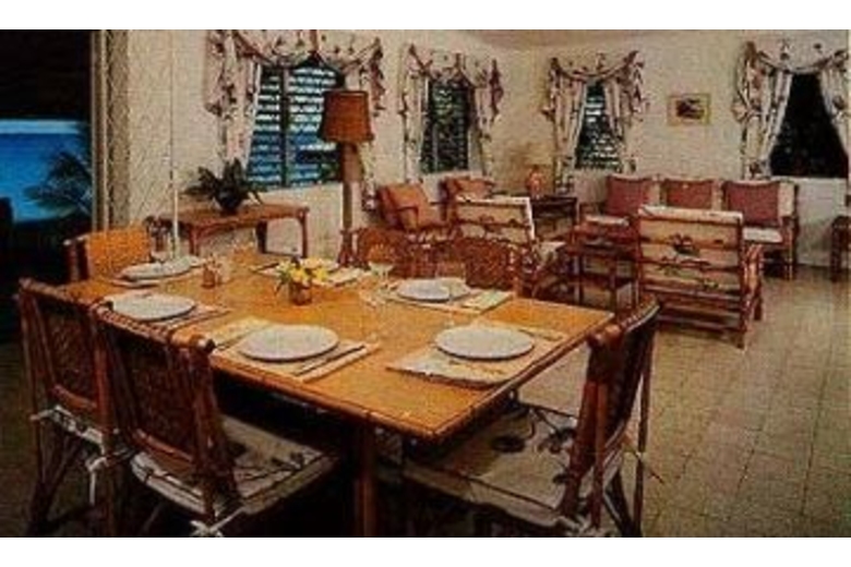 Aquamarine is an older, comfortable beach house situated on Mullins Bay. The interiors feature a combination of rattan and bamboo furnishings as well as a spacious sitting and dining room.