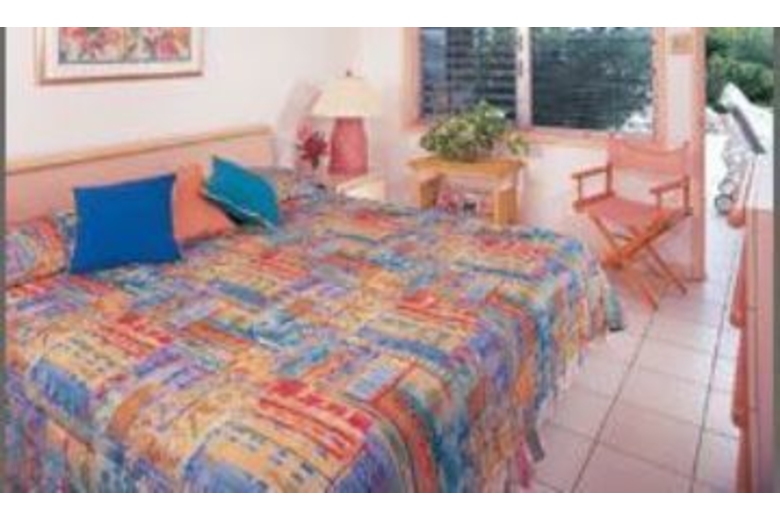 The interiors feature cool white tile floors and tropical rattan furnishings. It offers two bedrooms with en suite baths and another two bedrooms with a shared bath.Surrounding Description