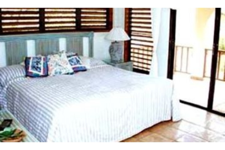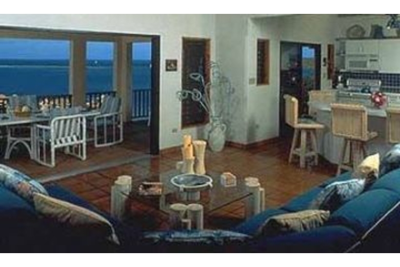 The home is built on two levels. On the main level is the beautifully furnished living room decorated in tropical hues, a modern kitchen and tasteful master suite. All of these rooms open to a spacious terrace with open air dining. An interior staircase leads to the lower level and the two bedrooms that share a bath.Surrounding Description
