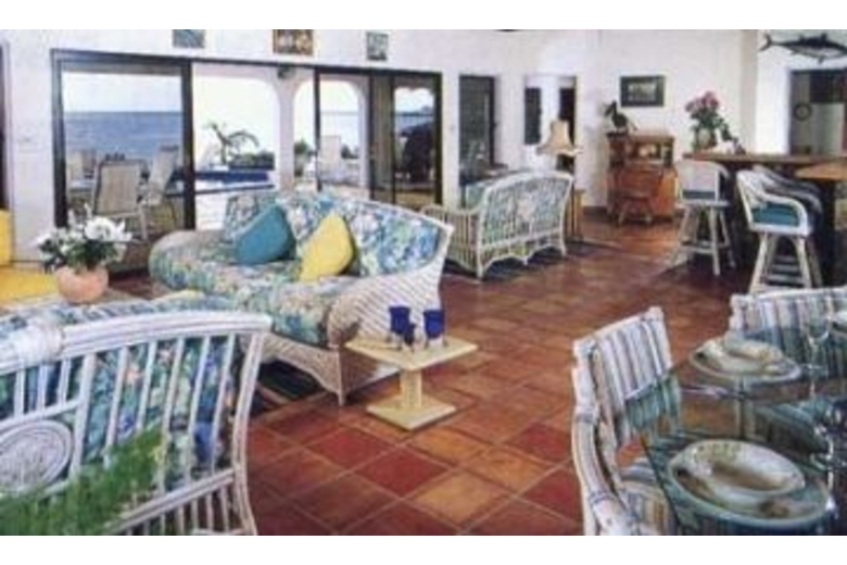 The interiors feature terra cotta colored tiled floors, cathedral ceilings and bright wicker furnishings with tropical colors. The Great Room is 1000 square feet and encompasses a fully equipped kitchen with every imaginable appliance (even an espresso machine), comfortable wicker furnishings ideally grouped for conversations and reading and a wonderful music system. An expansive and shaded verandah is comfortable furnished and offers a delightful spot for reading, relaxing or dining alfresco. Lush tropical gardens bursting with brilliant flowers edge verandah and the beautiful sands of Mahoe Bay are just a few steps away.This expansive and wonderful villa offers 160 feet of white sand beachfront setting with exceptional swimming and snorkeling beyond. Highly recommended for couples and families!Surrounding Description