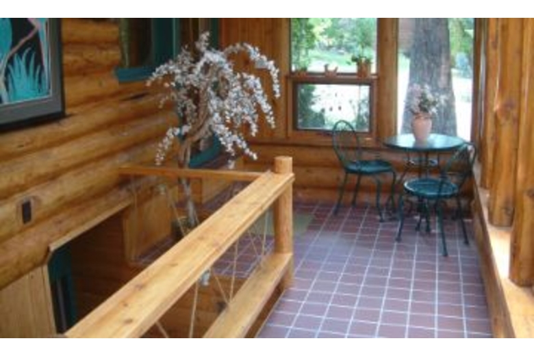 This adorable log home is nestled beneath the trees near golf courses and hot springs, open all year round. You'll enjoy the sunroom and large yard of this cottage, with gorgeous scenery views everywhere you look.