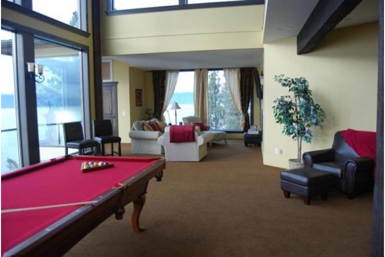 Casa Grande has 4 fire places, games room with pool table and darts ect., wet bar, media area with 52" LCD flat screen, elevator to dock and beach, 2000 square foot furnished outdoor patio with summer kitchen with BBQ and bar, hot tub, and private use of furnished dock with 2 seadoo lifts and boat lift.