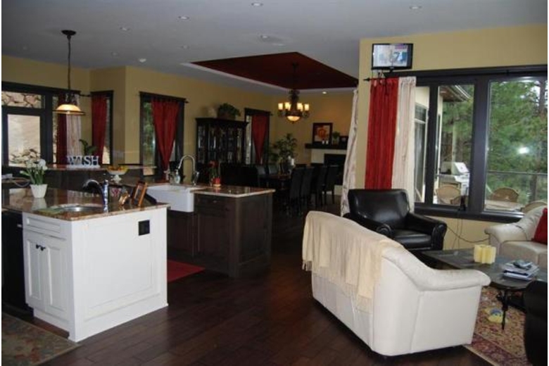 Picture yourself in an Architectural Masterpiece perched on a cliff above the majestic views of Lake Okanagan nestled in mountain and forest. This brand new 4 bedroom, 4 bathroom 8,500 square foot home (including outdoor living on balcony's) is for those who have discriminating taste. Our kitchen is a chefs and entertainers dream! This spacious kitchen has Italian granite counter tops with 2 islands, raised bar and leather bar stools. One island with sink is used for food prep and cooking. The other island has a double porcelain farmers sink and dish washing station used as a butler's pantry. There is a 6 burner Icon Professional Series dual fuel range with griddle and wok attachments, Viking Professional Series fridge/freezer, Icon Series ultra quite dishwasher and microwave. The open concept design of the kitchen connects to dining room with fireplace, table seating 12, cafe lounge, french doors opening to a private balcony with gas BBQ and outdoor eating area. This entire space orients unparalleled 180 degree views of lake and beach. Enjoy your favorite cooking show or T.V. program on the 32" LCD flat screen with satellite while you cook. This kitchen is so amazing, you may never want to leave!