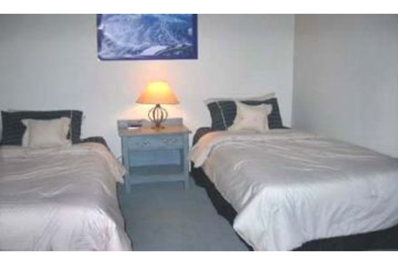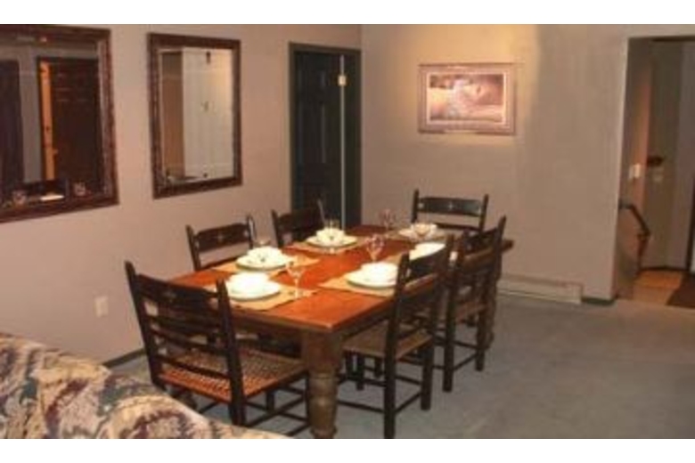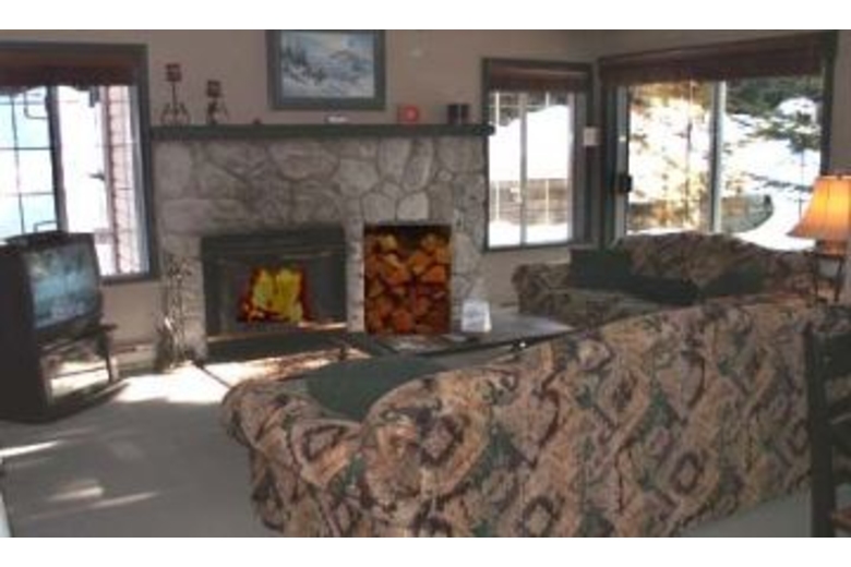 This is a two bedroom, one bath townhome. The living room has comfortable sofas around a river-rock wood-burning fireplace plus TV/DVD/CD stereo. There is a fully equipped kitchen. The master bedroom has a queen bed, and the second bedroom has two twins beds.Surrounding Description