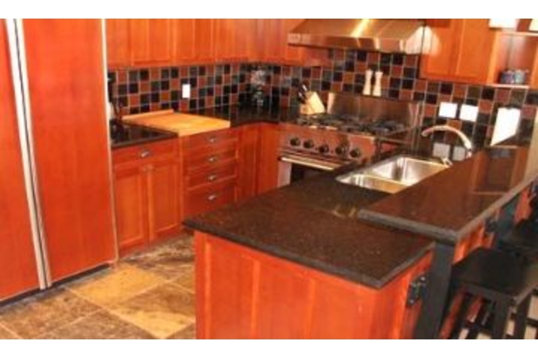 This townhome has four bedrooms and three and a half baths. The living room has large comfy sofas and chairs around the stone-faced wood burning gas-assist fireplace with TV/VCR and CD/cassette stereo. There is a fully equipped gourmet kitchen with granite counter tops, gas range, dishwasher and microwave and heated slate floors.Surrounding Description