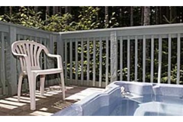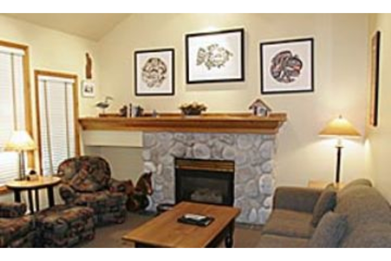 This one-level townhome features nice furnishings and a rock fireplace. It has two bedrooms, including a master suite. The master features a jetted tub and a queen size bed. The second bedroom has two twin beds and a sofa sleeper is in the living room. The kitchen has beautiful cabinetry and is fully equipped. There is a nice dining area for six and a washer/dryer is included in the unit. Other great features include a private hot tub on the balcony, internet access, underground parking, and TV/DVD with rentals.Surrounding Description