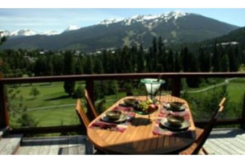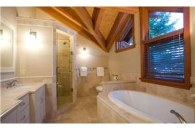 This spacious home has four bedrooms and three bathrooms; great for a family get-together. Enjoy the amazing vaulted ceilings with wood posts and beam timbers. The master suite features a queen size bed, private bathroom with a steam shower, gas fireplace, and a walk-in closet. Two other bedrooms have queen size beds and the fourth has two twin beds. A sofa sleeper is also in the home. The beautiful kitchen is fully equipped and features marble and granite. This home has panoramic views of the Whistler/Blackcomb Mountains and Arnold Palmer's Whistler Golf Club from the deck which also where is private hot tub is located. There is an impressive rock fireplace and a media room with large screen TV/DVD/CD player. Other great features include: internet access, washer/dryer, heated floors, cedar sauna, and a private double car garage.Surrounding Description