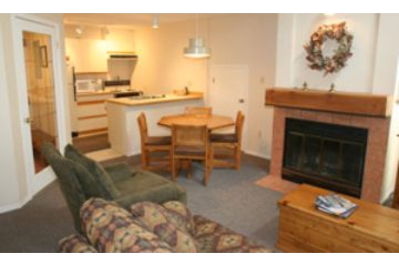 You will love this comfortable one bedroom townhouse spread out over two levels. The main floor features an open living area with log fireplace, fully equipped kitchen, and a dining table that seats four. There is a queen bed in the master bedroom, and a sofa sleeper, making this suite perfect for a couple or small family. Other amenities include a jetted tub, cd player, cable tv, and dvd player.Surrounding Description