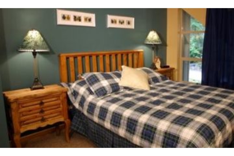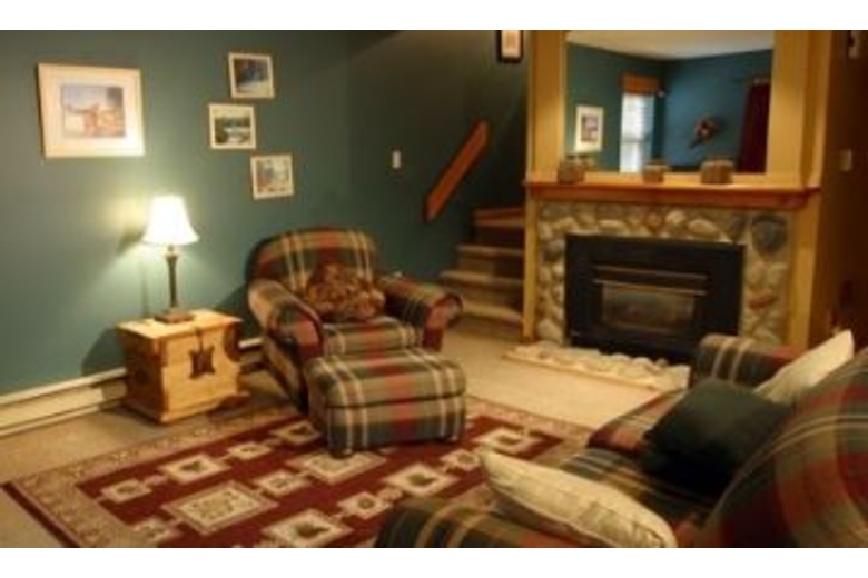 This townhome accommodation is an open concept, beautifully furnished private vacation home. The master has a Queen with a Tri-bunk (double on the bottom, single on top) in the second bedroom and a pullout Queen in the living room. It has a ground floor entry with ski storage with stairs leading to the second floor kitchen, living and dining room, full bathroom, gas fireplace, private patio and TV/VCR. The third floor houses the master bedroom with a second TV, one full bathroom (outside the master) and the second bedroom.Surrounding Description