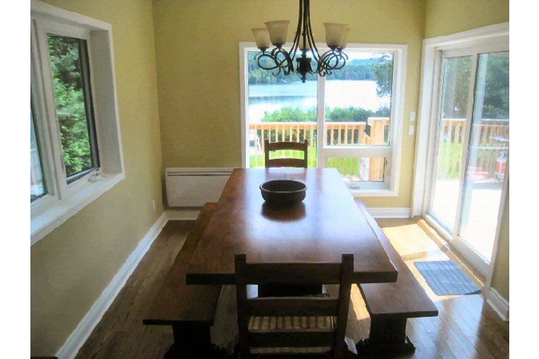 Built on a large private waterfront lot along Lac Superieur. This 4050 sq ft chalet will spoil you with its magnificent 25 ft.high cathedral ceiling living room. Large deck with BBQ and chair patio seating and hot tub over looking Lac Superieur.