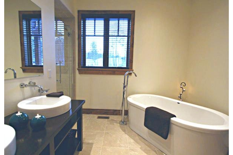 We have a cozy fireplace nook in the professionally decorated living room and a TV with cable connection, satellite, DVD player, VCR and CD/stereo system to watch your favorite movies and shows in between your outdoor adventure. Kids can enjoy the available games while you work out a good sweat in the superb home gym at this Mont Tremblant vacation home. Those who prefer preparing their own meals during vacations will be delighted with ease of cooking, at our fully equipped kitchen. On the ground floor, we have a queen bedroom with well fitted attached bathroom and a large screen patio with in ground Jacuzzi. Also there is a laundry room for your convenience and a two car garage to park your vehicles.