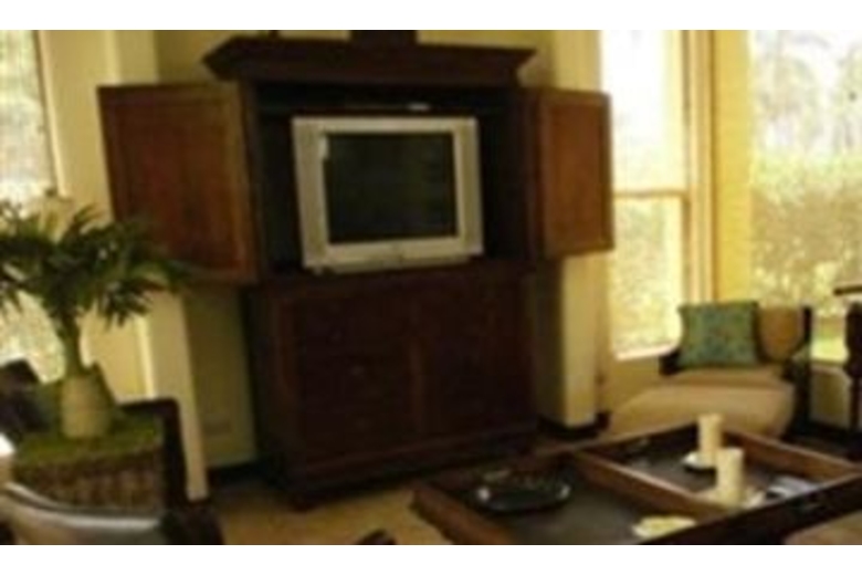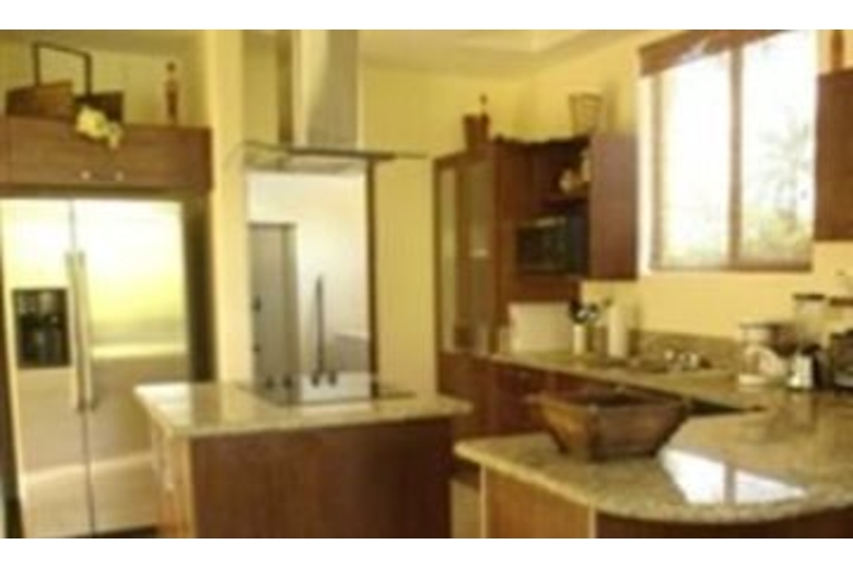 This home has a completely beautiful interior. It features butter colors with splashes of light green and orange throughout and rich dark wood tones. The kitchen features beautiful dark cabinets and stainless steel appliances. This is elegance at its best! The house has a great outdoor area with plenty of seating. There is a gas grill, dining table and lounge chairs next to a delicious plunge pool. There are two folding aluminum beach chairs available.Surrounding Description