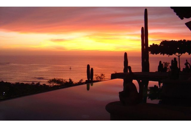 All areas of the Casa Pipilacha offer breathtaking panoramic views of Playa Tamarindo and Playa Langosta and the endless ocean. In front of the living room and the large roofed terrace sits a huge "infinity" pool with two smaller sun terraces - all with a fantastic 180 degree view. Plunge in the pool, relax on the terrace and enjoy the picture-perfect sunsets from this magnificent lookout! The kitchen is fully equipped and offers all amenities even for the passionate cook. A gas BBQ is also available. You can choose between two dining areas: outside on the terrace or inside the living room. The entire house is screened in and opens onto the terrace. The master suite features a king size bed. The second bedroom comes with a queen size bed. Both bedrooms have panoramic windows. The whole house is fully air-conditioned. But the very special feature of the house is its spoiled cat that will accompany guests during almost all of the day.Surrounding Description
