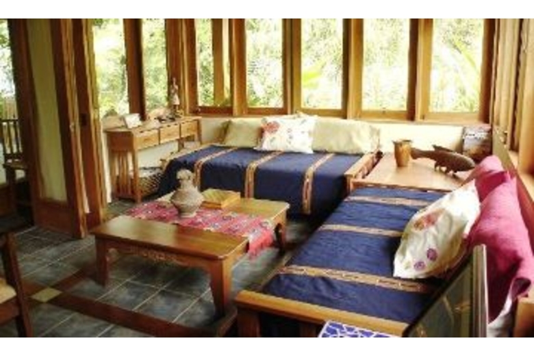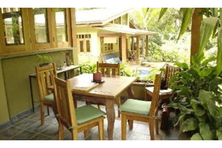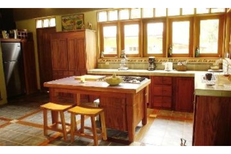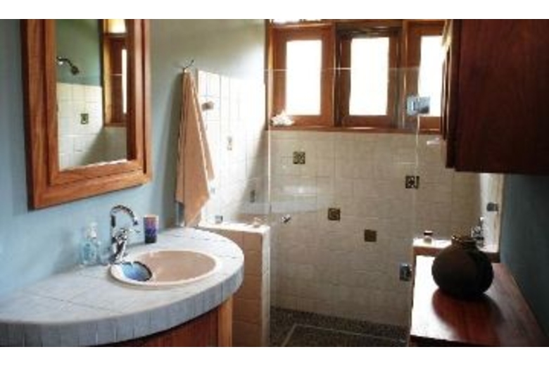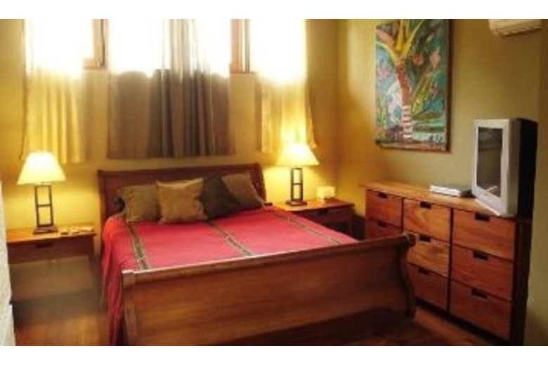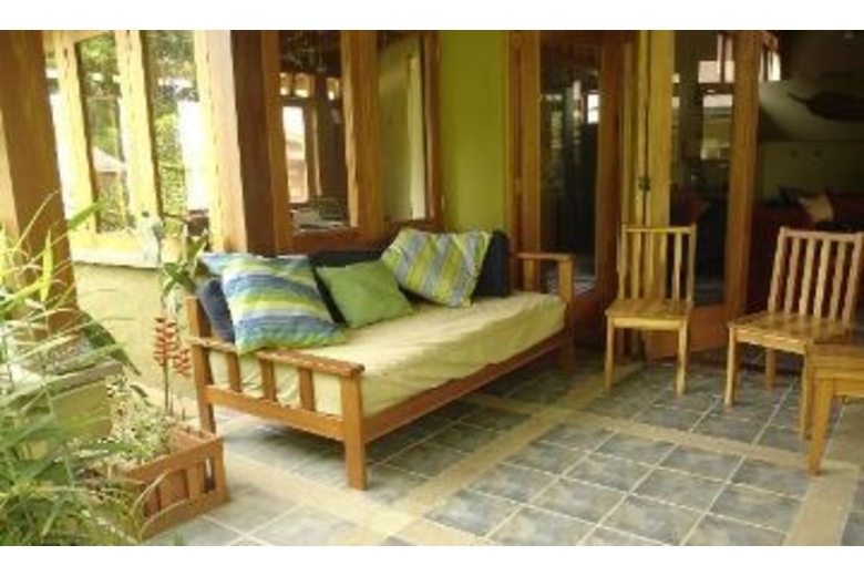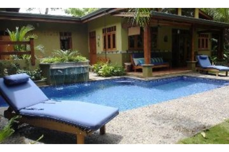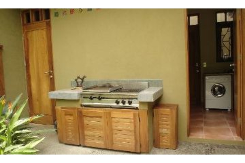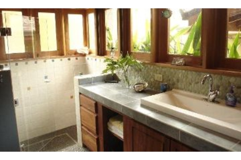 Luxuriously appointed with high ceilings, wood, fabrics and other natural materials. The master bedroom has a queen bed, TV and a bay window with seating. The other bedroom has a double and a twin bed. Air conditioning and ceiling fans are present in all rooms, however, the house is naturally cool thanks to the its high ceilings. A professional grade gas grill will delight outdoor food enthusiasts. Sit by the pool and read your favorite book in peace, and take in the surrounding tropical vegetation.Surrounding Description